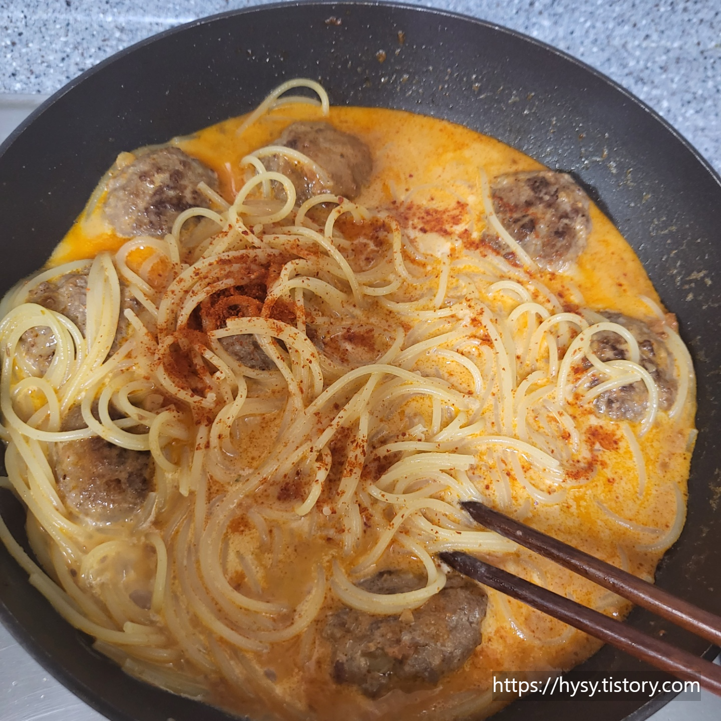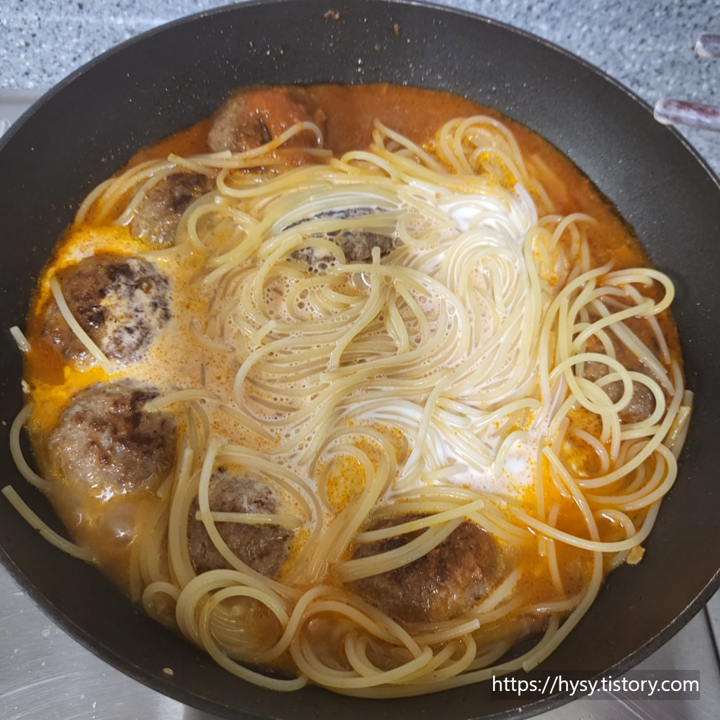 저희 부부는 크림 파스타 대신 미트볼 파스타를 좋아하기에